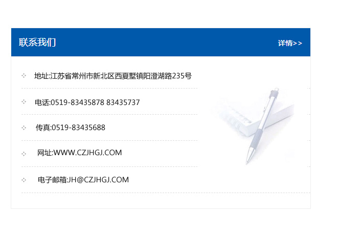 傳真:0519-83435688    郵編:213135    網址:WWW.czjhgj_com.gutaishan.com    電子郵箱:JH@czjhgj_com.gutaishan.com